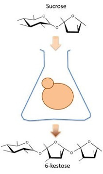 A Saccharomyces cerevisiae strain has been modified genetically to express a mutated version of invertase that produces high yield of prebiotic 6-kestose, using sucrose as substrate. A batch culture of the modified strain can produce ca. 200 grams of 6-kestose per kilogram of sucrose (Marín-Navarro et al. 2015).